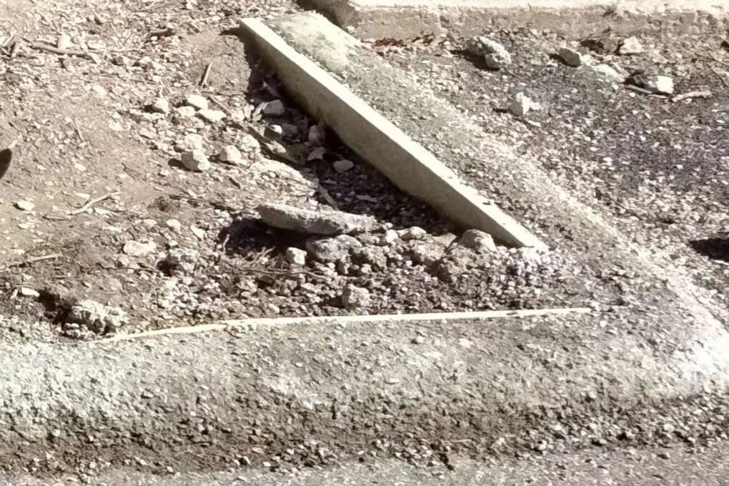 The curb at the street has dissolved after winter installation. Need to repair or replace the curb to maintain proper drainage and street appearance.